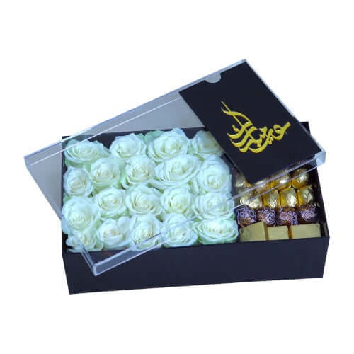 | Acrylic box, 20 ROSES , 250G CHOCOLATE |