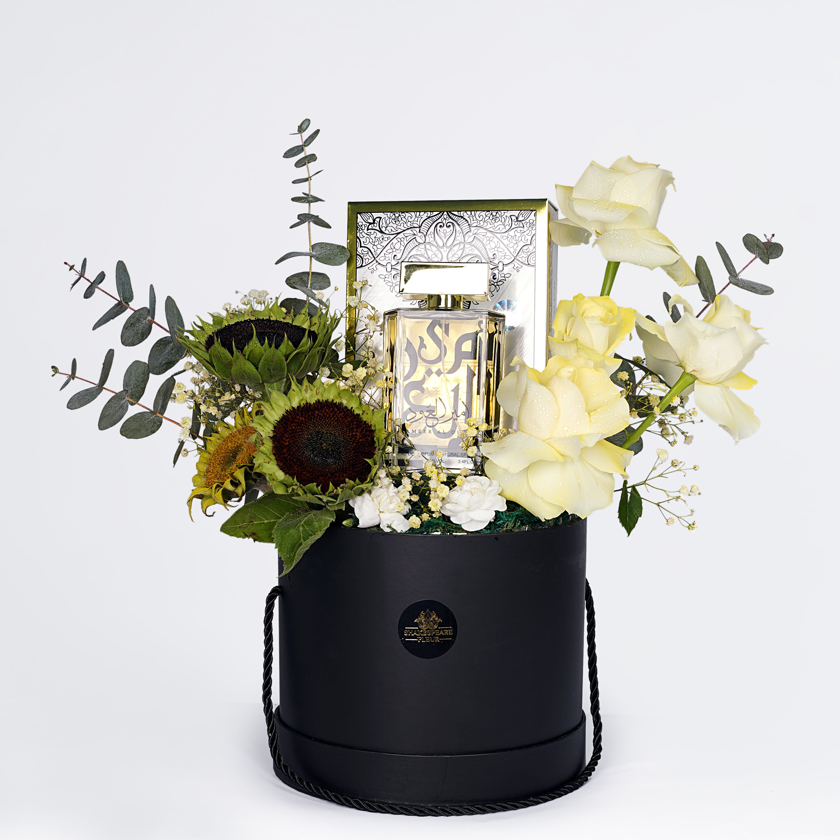 Elevate your gifting with Amir Al Oud – a rich oriental fragrance presented in an elegant floral arrangement, enclosed in a premium black cylinder box. A refined gift for graduations, Eid, or meaningful occasions.